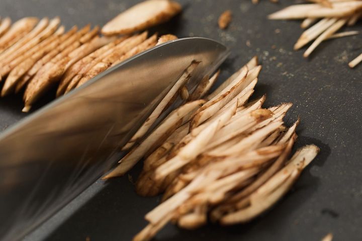 1.ごぼう、にんじんはよく洗ってから、皮ごとせん切りにする。鶏もも肉は薄いそぎ切りにし、長さを半分に切る。