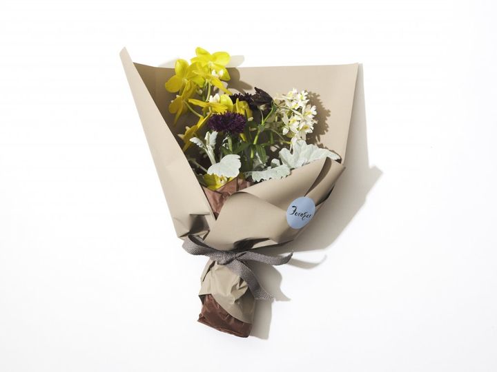 店主のチーコさんこと上野智枝子さんのやわらかな感性が広がる小さな花屋『Forager』。華やかな花を引き立たせるのではなく、それぞれ個性を持つ花が自然と寄り添い合うようなブーケが、贈る相手に優しさを届けてくれそう。ブーケ ¥3,850