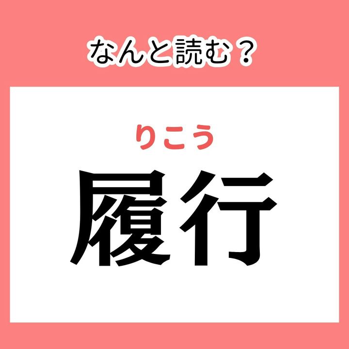 日々の忙しい生活の中で、ちょっとした息抜きを求めている方もいることでしょう。そんな時にぴったりなのが「難読漢字」。頭をひねりながら、その読み方や意味を想像することで、頭のリフレッシュにもなる難読漢字をご紹介します。今回のお題は「履行」。あなたは読めますか?