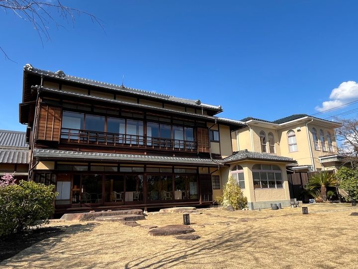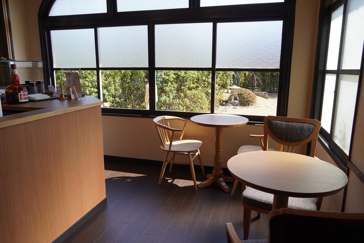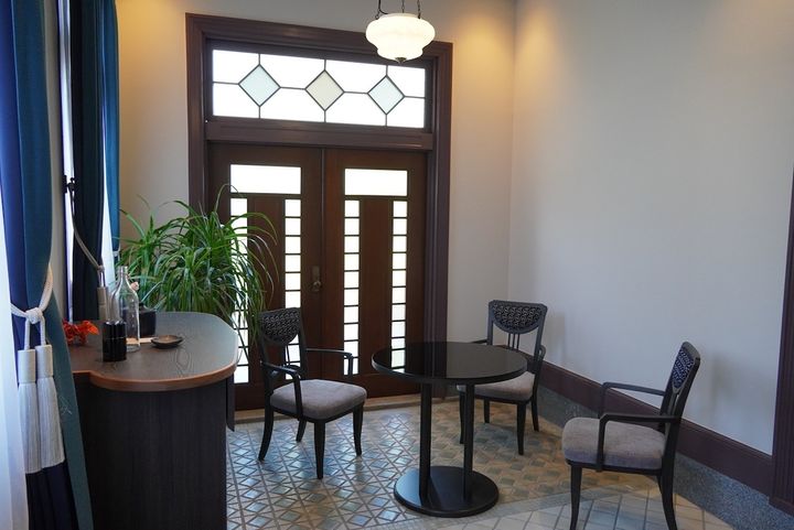 スパニッシュ風の洋館は、レトロな雰囲気がとっても素敵な「樟(くすのき)」。かつて玄関として使われていた場所がティースペースです。