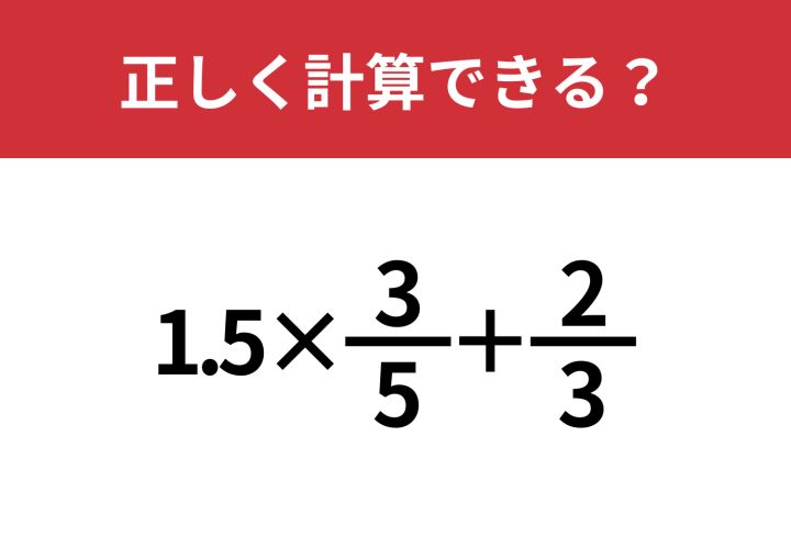 「1.5×3/5+2/3」正しく計算できる?