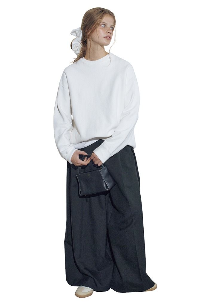 ぶかっとしたフォルムやキャッチーな柄など、カジュアルなかわいさをとり入れるならやっぱり頼りになるのは品よく着地できるモノトーン。たった2色のストイックな配色も、スウェットがかもすゆるい風合いのおかげで、適度な脱力感が得られる。