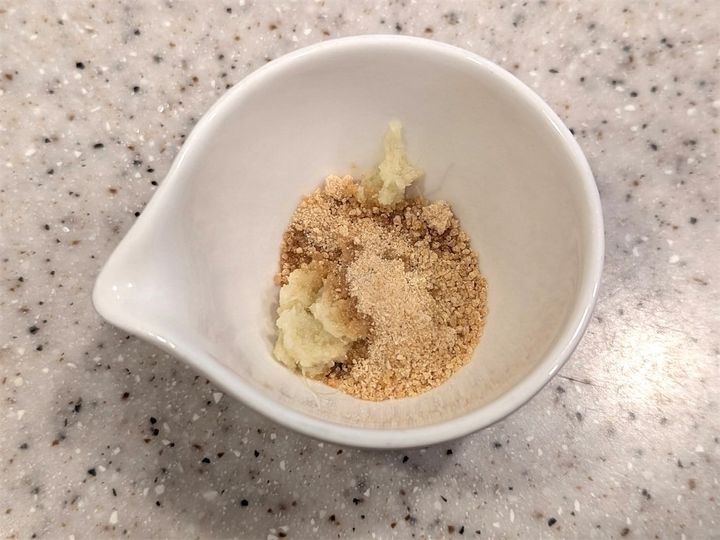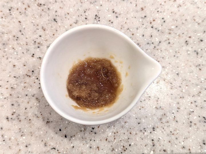 しょうがをすりおろし、砂糖と軽く混ぜ合わせてからレンジにかけます。加熱時間は、砂糖が溶けるくらいを目安に600Wで10秒ほど加熱しました。
