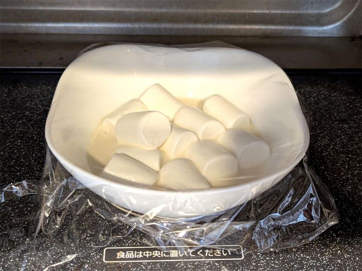 レンジで加熱しただけだと、画像のようにマシュマロの形が残っていますが…