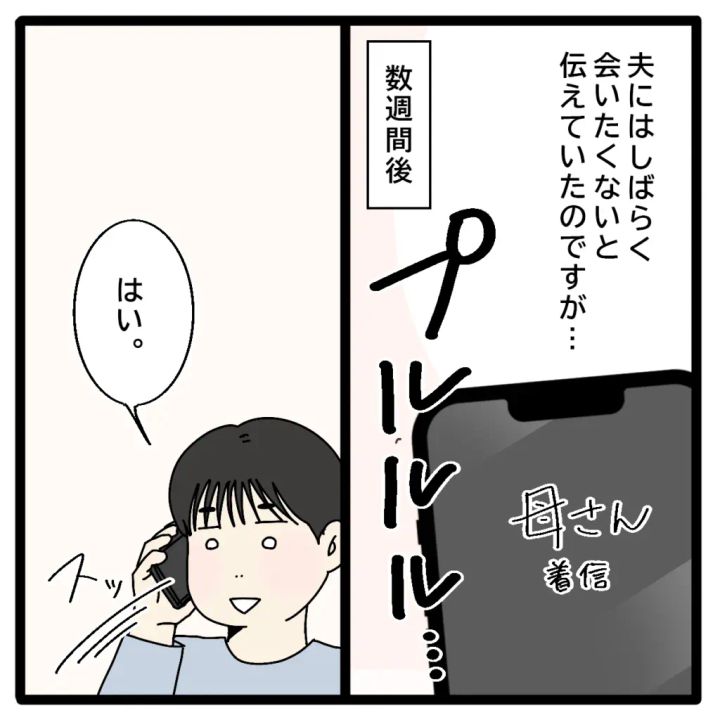 息子ケイタのアレルギーが母親の私のせいだと責められたことで義実家にも行きたくないし、顔も見たくないと思ってしまい、夫にも伝えていたのですが、それから数週間後のこと。