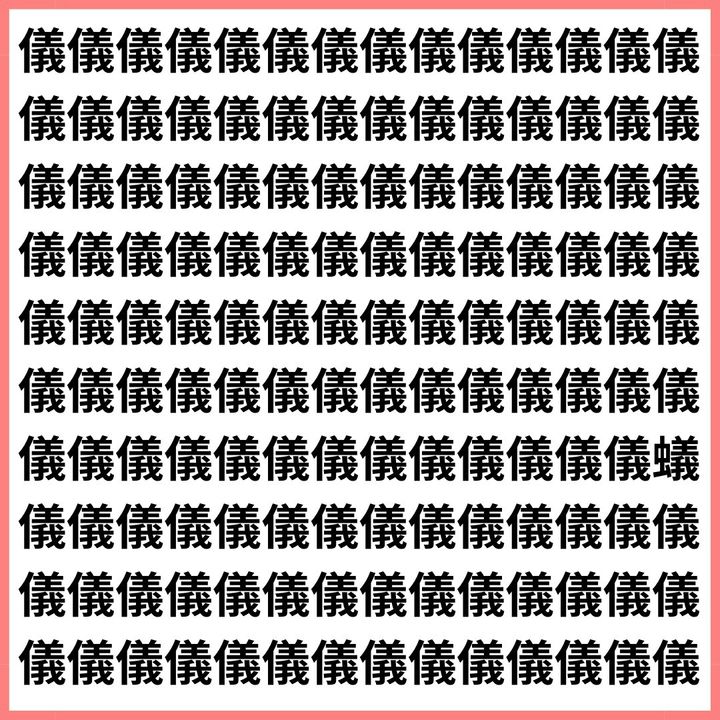 3. 儀の中に隠れた虫を探そう!【1文字だけ違う】漢字間違い探しで脳トレ、何秒で見つかる?