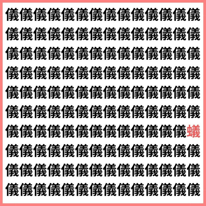 儀の中に隠れた虫を探そう!【1文字だけ違う】漢字間違い探しで脳トレ、何秒で見つかる?