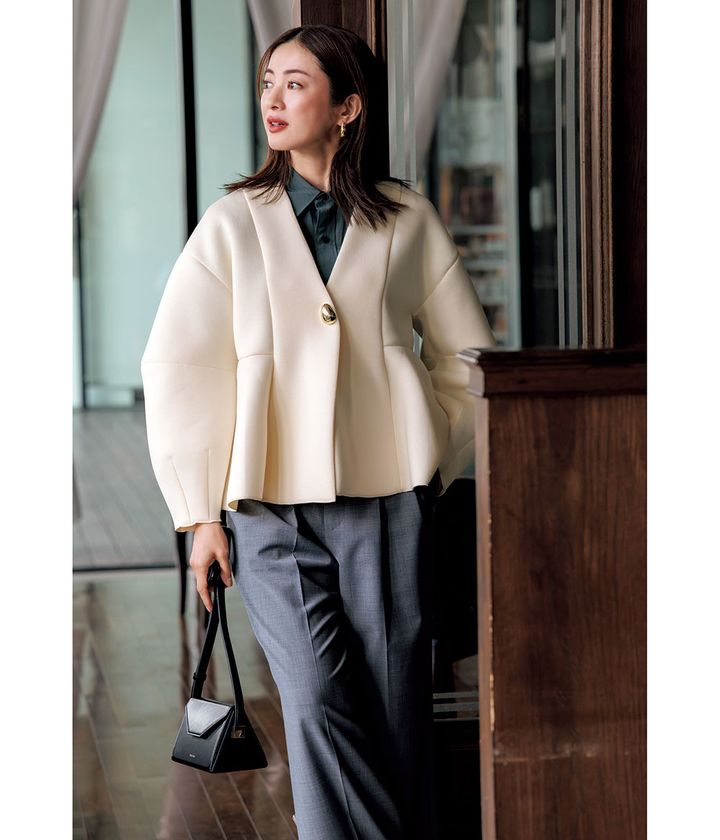 おシゴト後の楽しみなお出かけは「オシャレしてる感」を満たすデザインジャケットが適任。短か丈や盛り袖、柄など、トレンド感のあるディテールで褒められ率高め&カンバセーションピースに!