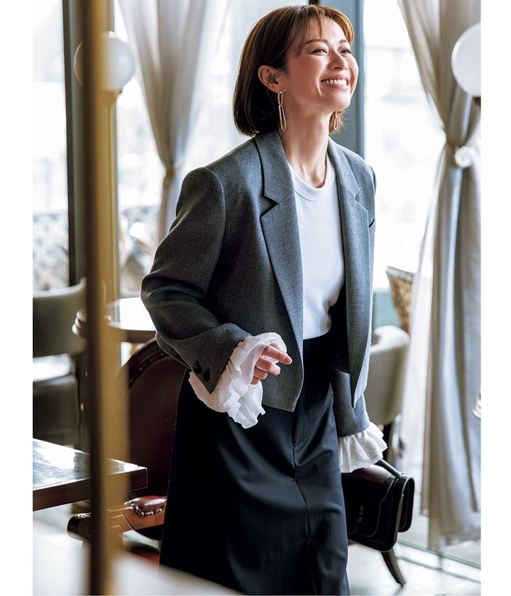 5.テーラード&ショート丈なら知的かつ、今っぽい♡ マシンウォッシャブル、防シワ。