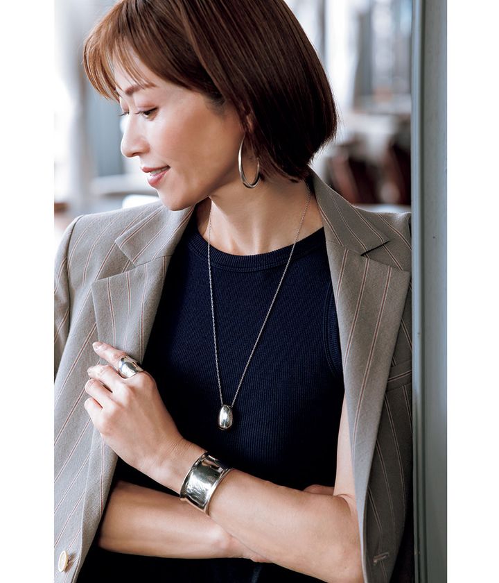 シルバーアクセを盛ってこなれたカジュアル感をON。