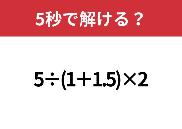 大人ならすぐに解けるはず!?「5÷(1+1.5)×2」5秒で解ける?