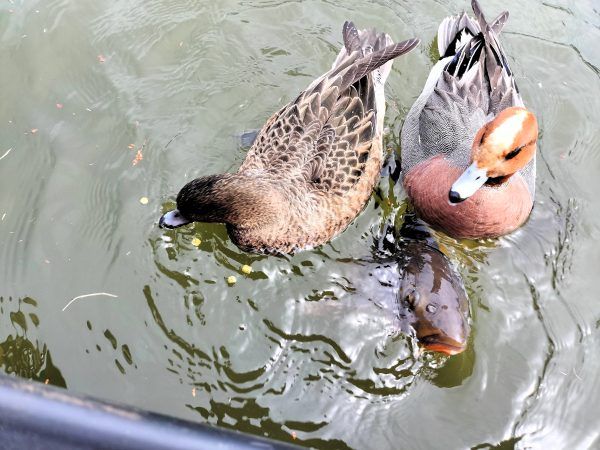 ちゃんとコイもいたけれど、だいぶカモちゃん達の勢いに負けていました!