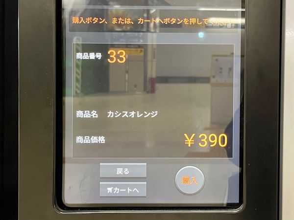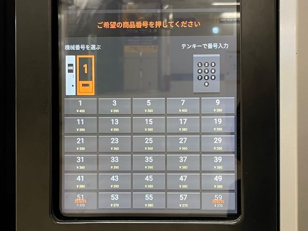 気になるものを決めたら、自販機左側のタッチパネルで欲しいアイテムの番号をタッチします。