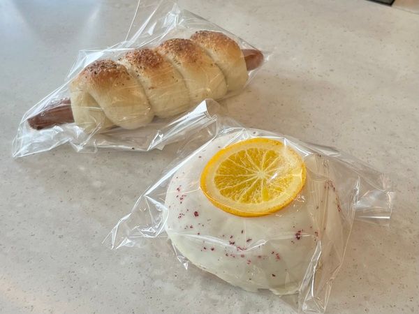 ベーグル ソルティドッグ(380円税込)、ドーナツ カシスオレンジ(390円税込)