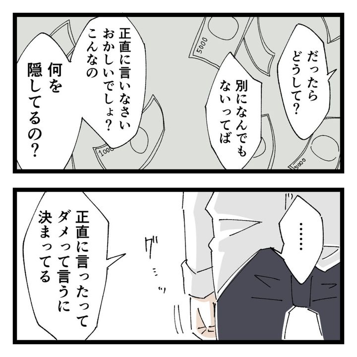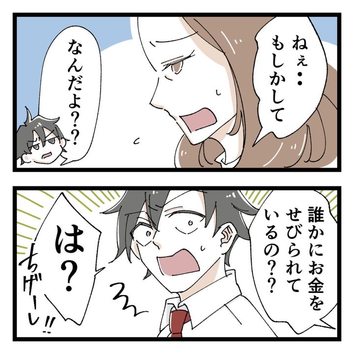 すると、「ねぇ・・もしかして・・誰かにお金をせびられているの??」お母さんが心配そうにそう言うと、「は?ちげーし!!」とショウくんは否定します。