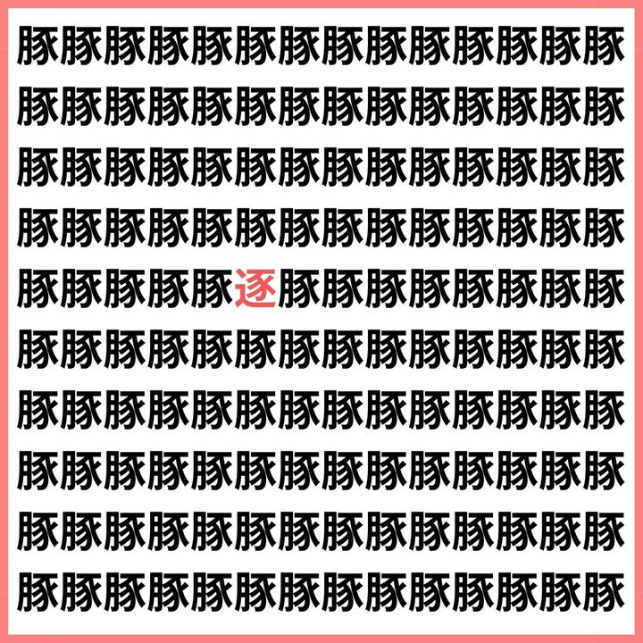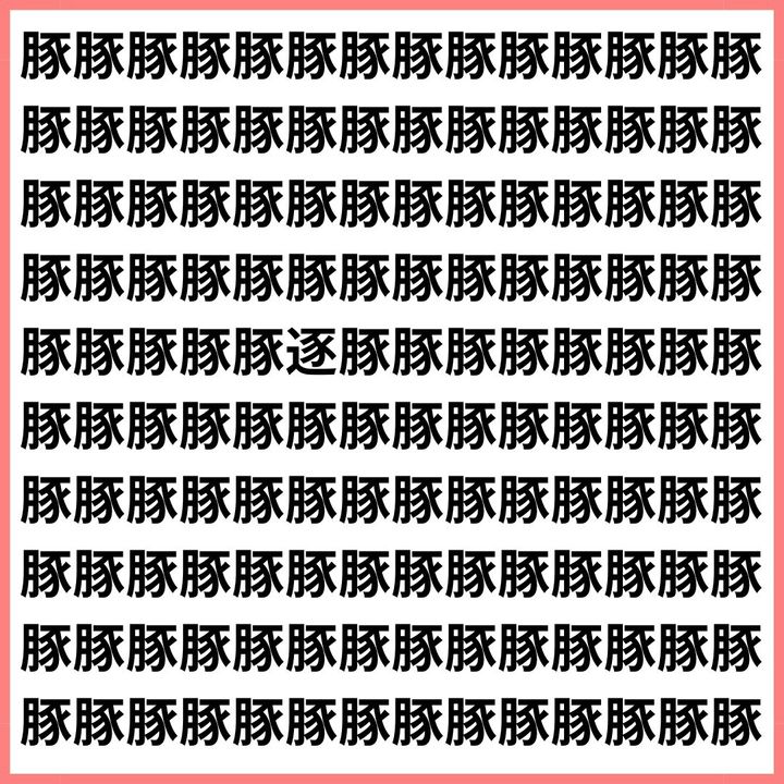 たくさんの「豚」の中に、1文字だけ違う漢字が混ざっています。