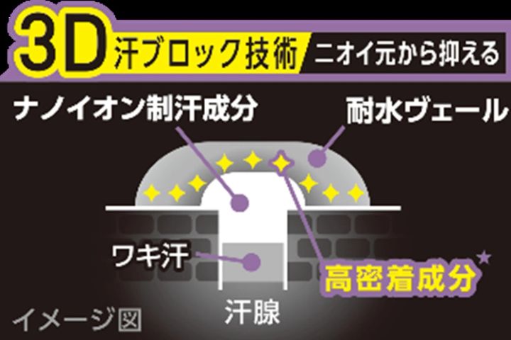 Point 3D汗ブロック技術で、ニオイの発生源「角質層*1」までアプローチ