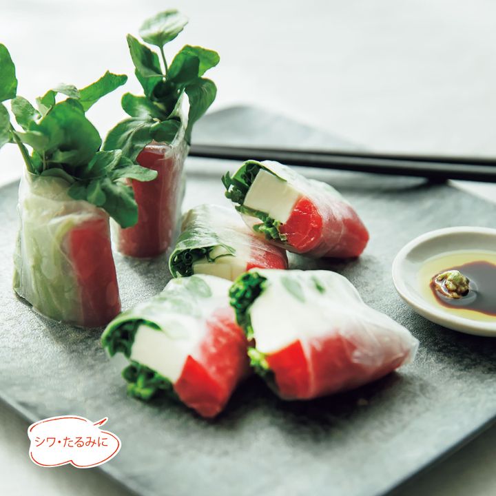 <クレソンとチーズ、まぐろの和風生春巻き>