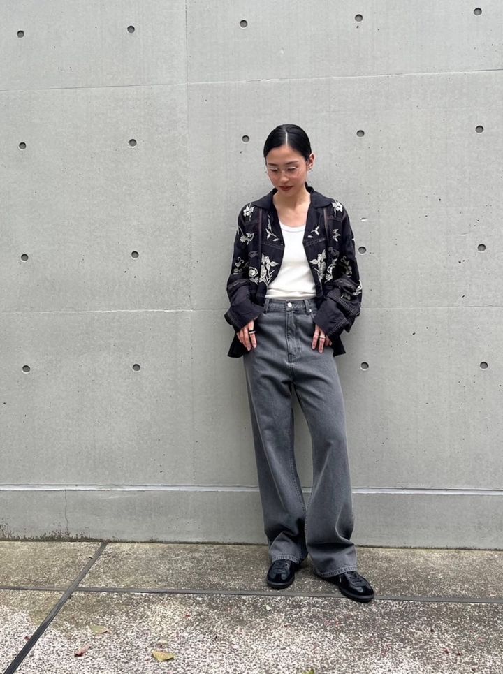 「13種類もの刺繍を使用したパッチワークがポイントの開襟シャツ。インドで一枚一枚に刺繍をあしらい、柄の配色や袖口のディテールまでこだわりの詰まったアイテムです。今回はこのシャツを主役に、デニムとスニーカーを合わせたヌケ感のあるカジュアルスタイルに仕上げました。全体的にシックなトーンでまとめ、シャツのディテールがより際立つようなスタイリングを意識しました」