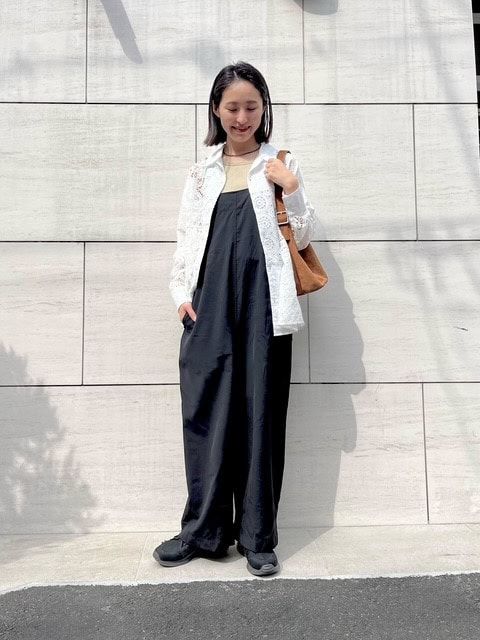 「5種類のレースをパッチワークにしたフリーダのシャツをメインに、ベージュとモノトーンカラーでシックにまとめました。落ち着いたカラーコーデですが、透け感のあるシャツを羽織ることでスタイリングがグッと春らしく、軽い印象になります」