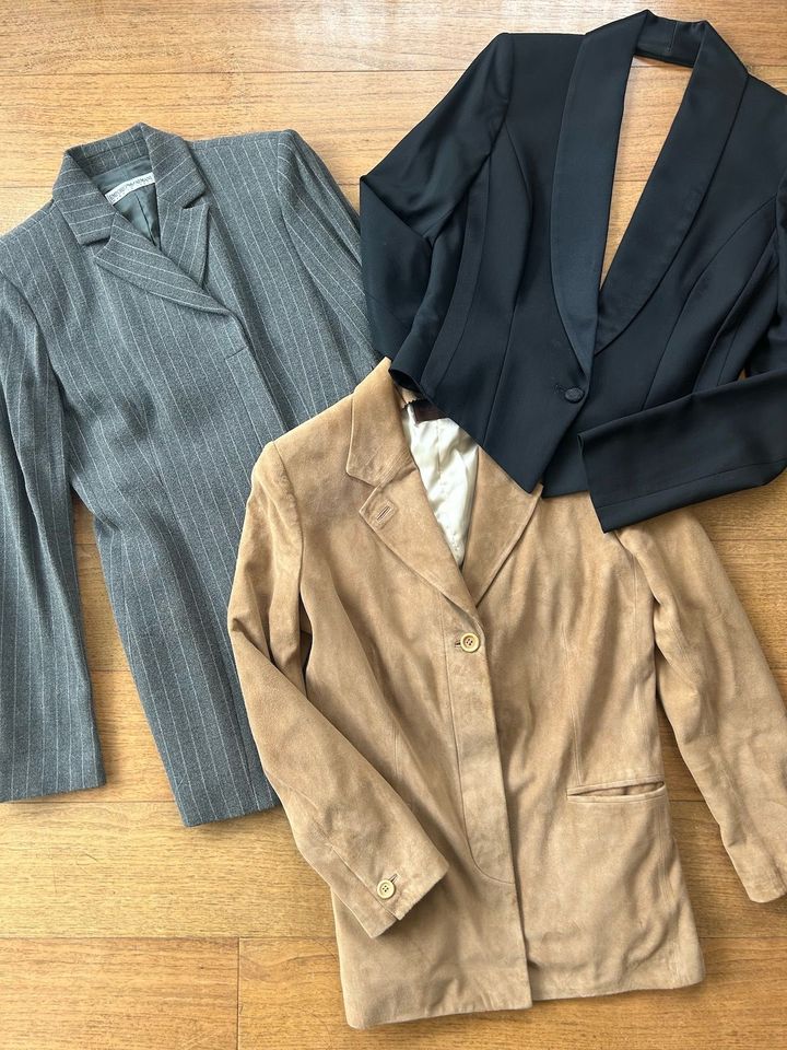 「ヴィンテージショップに行った際、よいジャケットを見つけるとつい即買いしてしまいます(笑)。自分のスタイリングにおいて、ヴィンテージのフォルムにこだわるブームが訪れることがたまにあって。エンポリオ アルマーニ(上の写真左)はパワーショルダーとタイトなシルエットがお気に入りです。もうひとつのロエベ(上の写真右)のタキシードジャケットは、フロントはタキシードですが、オーバーサイズで背中が大胆に開いているため、ドレスに合わせることが多いですね。メゾンブランドのヴィンテージアイテムは、そのタグからも歴史が感じられるので、普段あまり見ないデザインのタグを見つけるとテンションがあがります」
