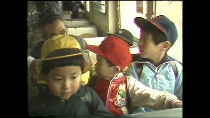 45年前1980年に取材した、駒岡小学校の通学の様子を見てみると、校長先生が児童たちと話をしながら、バスに揺られて学校へ向かっています。