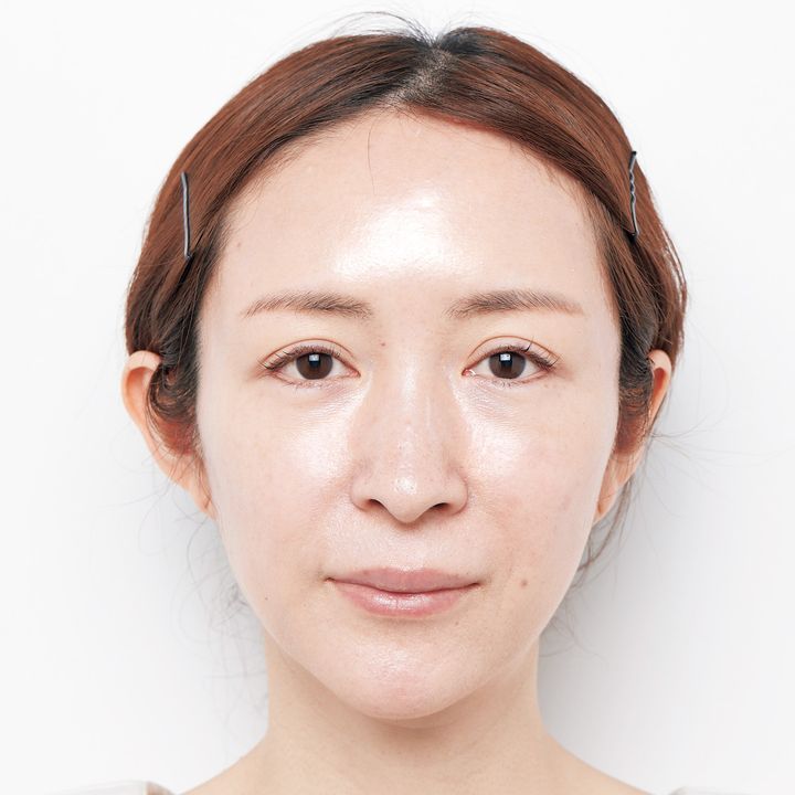顔全体がトーンアップして影まで薄れました。ツヤも増してまさにオーラ肌に。「使い始めて1週間で明らかに透明感が出てきて、友人からも肌がキレイと褒められるように。何をしても消えなかったシミも薄れて驚き!」