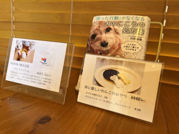 12時前くらいにお伺いすると店内は賑わっていました。テーブルに案内されるとペットの本が置いていました。犬のごはんとおやつも置いているようで一緒にお店にお伺いできるとの事です。 一緒にお出かけができて、食事も一緒にできるのはとてもうれしいですね☆