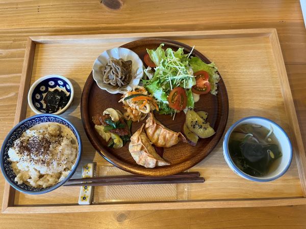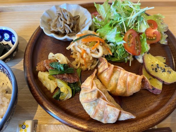 大きなプレートに目一杯の食材!何から食べようかと悩みます!本当にお肉を一切使っていないなんて思えないような見栄えですね。大豆ミートを使われていたり、揚げ餃子の具材も野菜だけなのにボリュームがあります。もちろん全部美味しくて、どんどん食べ進めてしまいました!十分にお腹はいっぱいにはなりますが、食後のプチスイーツも楽しみです☆