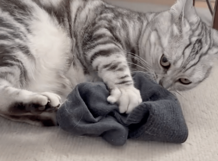 お父さんの靴下を枕元に運んで 猫さんの変わった「お気に入り」