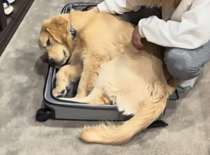 3. 置いていかないで スーツケースに入って眠る犬さんが切なく可愛い