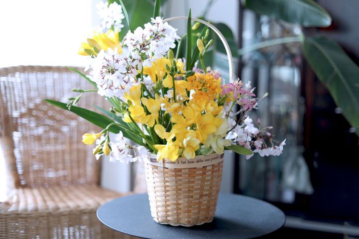 春の香り! フリージアのバスケットアレンジで季節の花を軽やかに楽しもう
