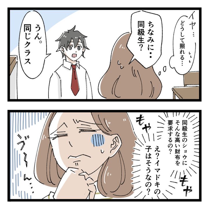 「同級生のショウにそんな高い財布を要求するの?え?イマドキの子はそうなの?」モヤモヤがいっぱいになりながら「う゛~ん・・」お母さんは考え込んでしまいました。