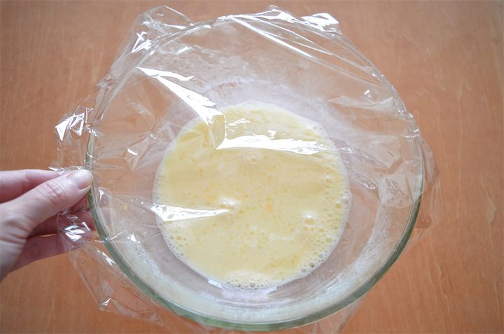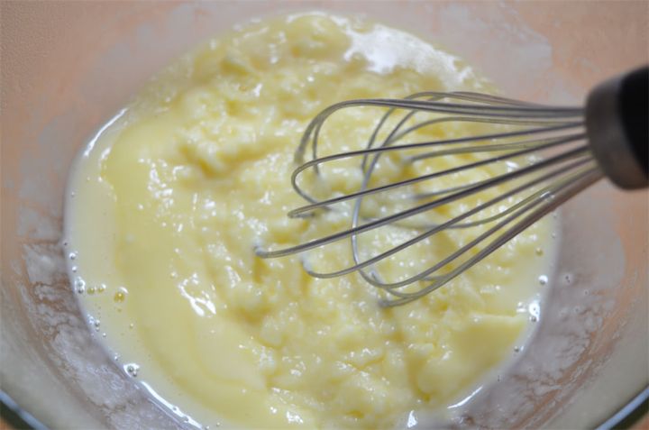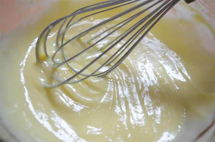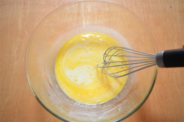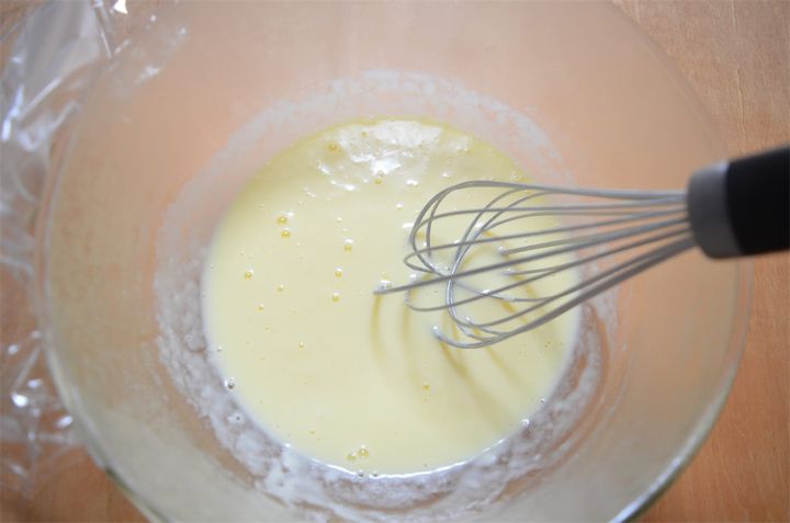5. 4に牛乳を加えて混ぜる。さらによく溶いた卵を加え混ぜる。