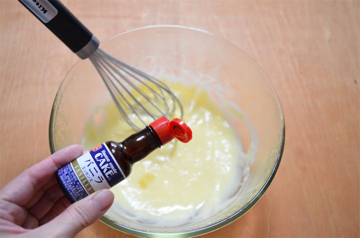 8. バニラエッセンスを加えてさらに混ぜる。粗熱を取り冷蔵庫で30分冷やす。