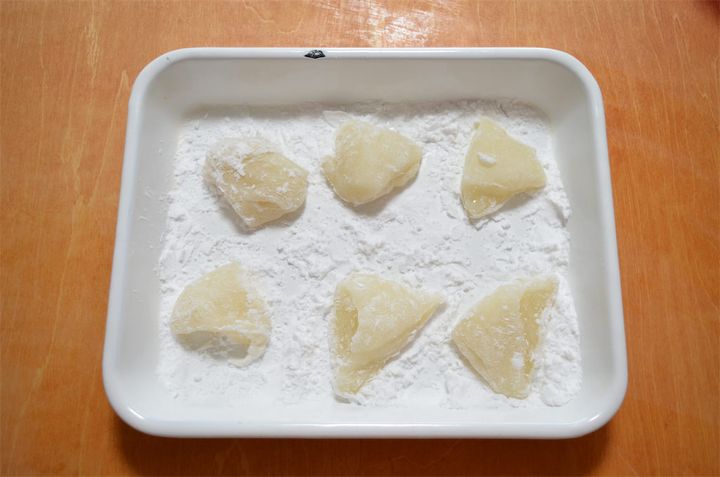 切り分けたらすばやく丸めて、乾燥しないようにラップをかけておきましょう。