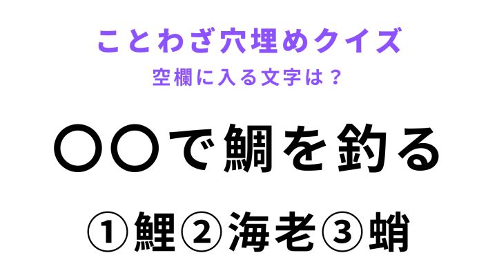 ことわざ「〇〇で鯛を釣る」には、なんの文字が入る?