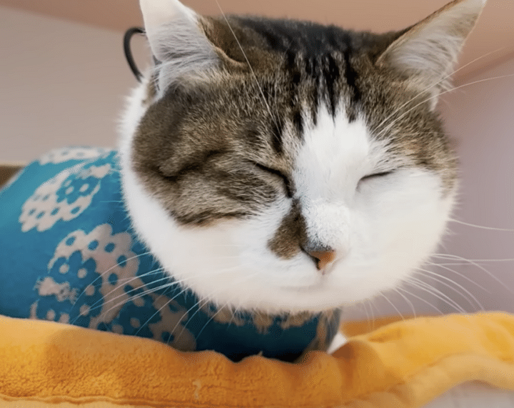 お仕事が終わるのを待っていたけれど 睡魔に負けて「ごめん寝」する猫さん