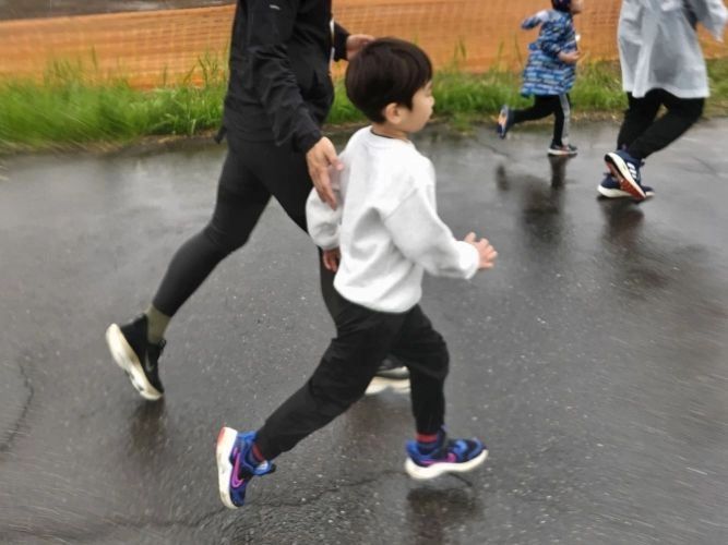 初の親子ランは、雨の中の開催ということもあり、きっと記憶に強く残る特別な体験になったと思います。最近は別行動が多い長男もこの日は妹弟の勇姿を動画で撮ってくれたり、声援を送ってくれたりと大活躍♪