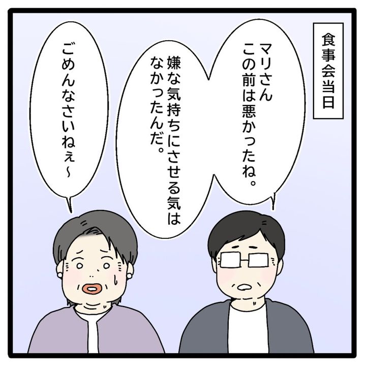 「マリさん、この前は悪かったね。嫌な気持ちにさせる気はなかったんだ」