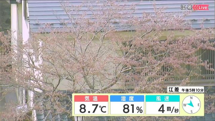 昼頃まで晴れて、サクラが咲いてますね。貴重な春の陽気です。日ざしと暖かさが戻り、気象台のサクラの標本木も開花するかもしれません。風は弱まり、日中は薄手の上着で外出できそうです。