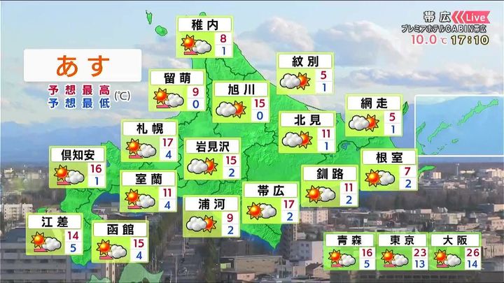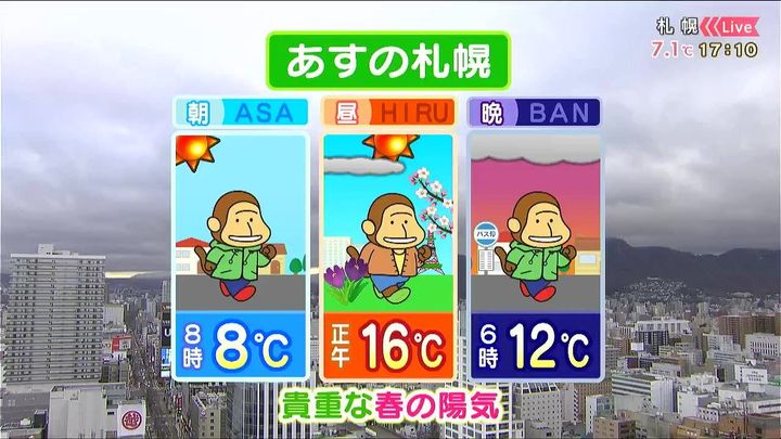 あす22日(火)の札幌です!朝昼晩の天気をもんすけでお伝えします!