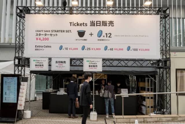 初めての来場した人は “CRAFT SAKE スターターセット” を購入します。飲食用コイン12枚とオリジナル酒器グラスがついて¥4,200。コインを追加したり、2回目以降の来場には、酒器グラスを持参すれば、追加のコインを買うだけで利用可能。うすはりのグラスもいい記念になりますよ。