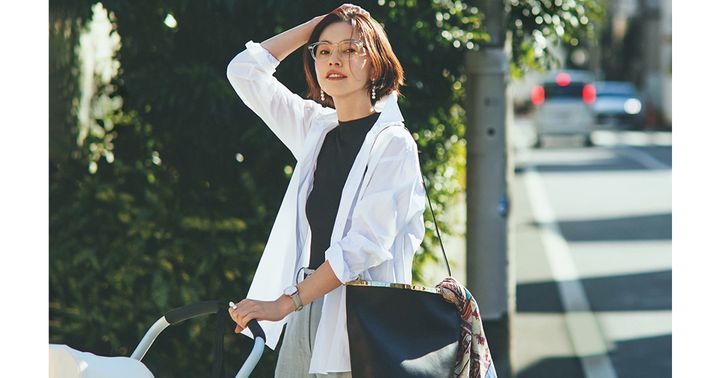 抱っこ紐でもスニーカーでもきれいめキープ スタイリスト川上さやかさん シャツ軸な復職服