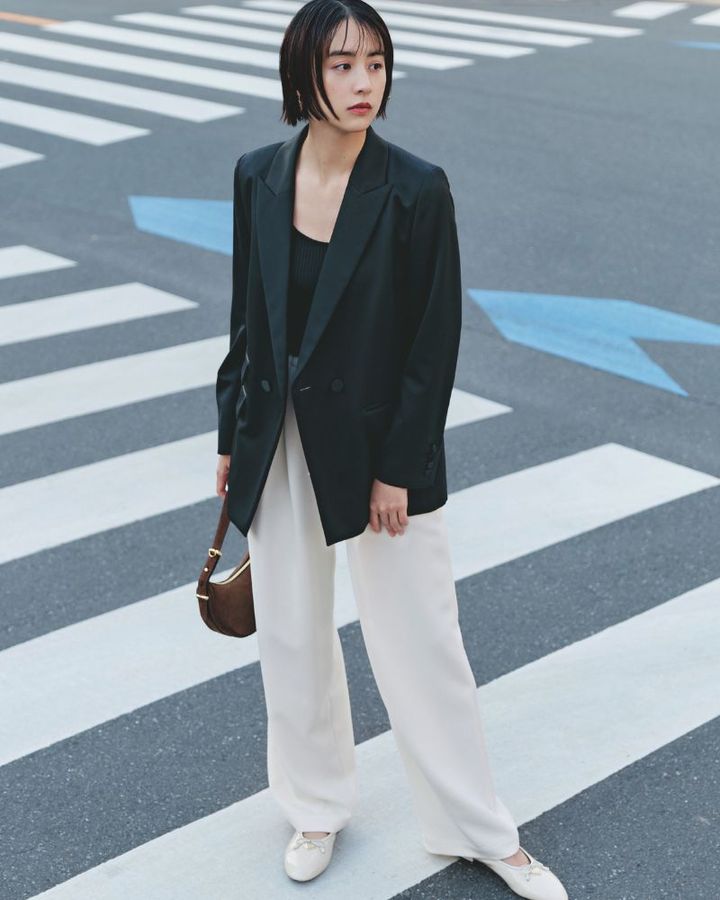 4月22日(火)、引き続き今年も人気の黒ジャケットは、羽織るだけでコーデを洗練させてくれる逸品ですが、今期らしい着こなしを意識して更新感を。この春はベーシックにモノトーンで取り入れて大人モードを演出するのがポイントです。「大きめジャケット×白パンツ」と合わせて無骨に着こなしつつ、バレエシューズやタンクトップで女っぽさをアピールしてバランス調整を。