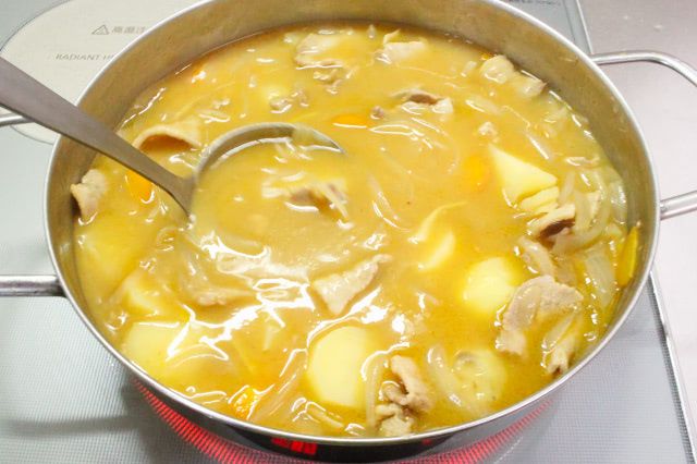 今回は動画通りに、にんじんとじゃがいもを入れるタイミングをずらしましたが、じゃがいもがやわらかくなるまで10分以上煮たので、同時に入れてもよさそうに感じました。