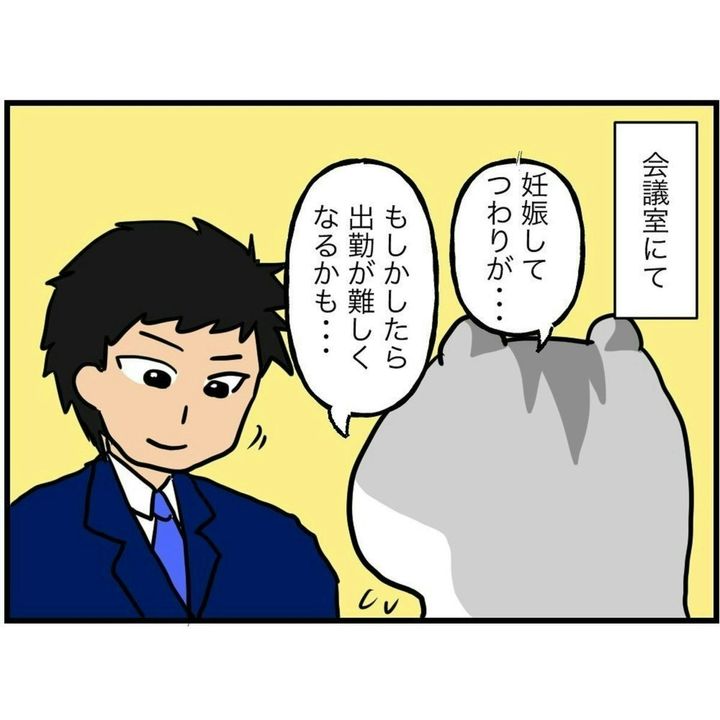 妊娠発覚とともに、重いつわりの症状におそわれたハム子さん。そこで、仕事の引き継ぎについて、課長に早めに相談しました。