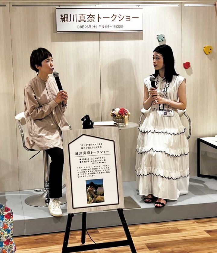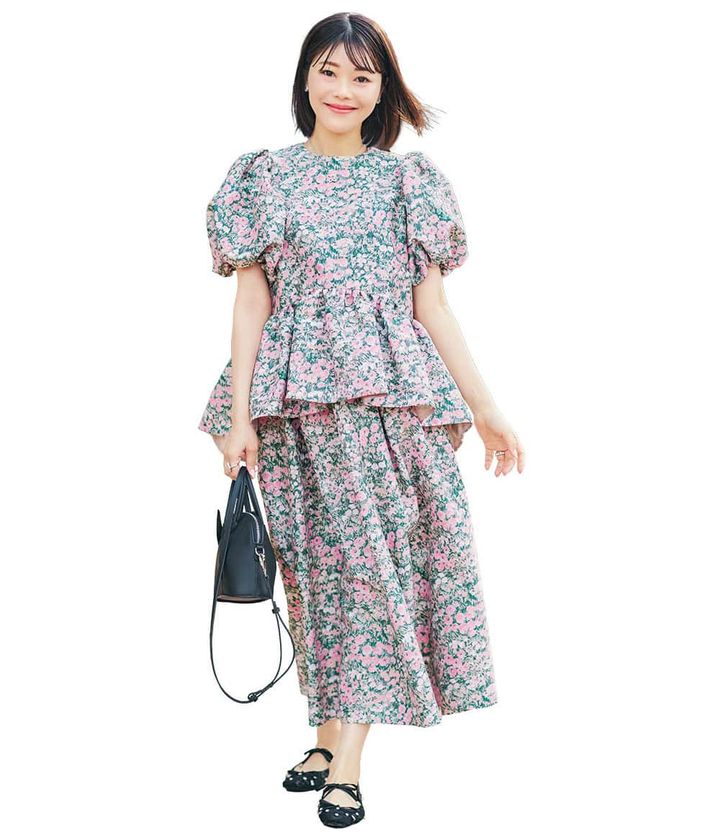 出産後は「母とはこうであるべき」という固定観念で黒やネイビーの服ばかり着ていましたが、「自分の好きな服を着ると気持ちも前向きになる」と気づき、好きなテイストのファッションに戻りました。座談会や講演会では子連れの方も多く、ふんわりしたトップスはお子さんも親しみを持って触りに来てくれるので、そういうところもお気に入りなんです。