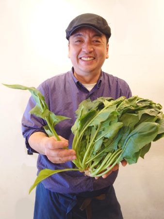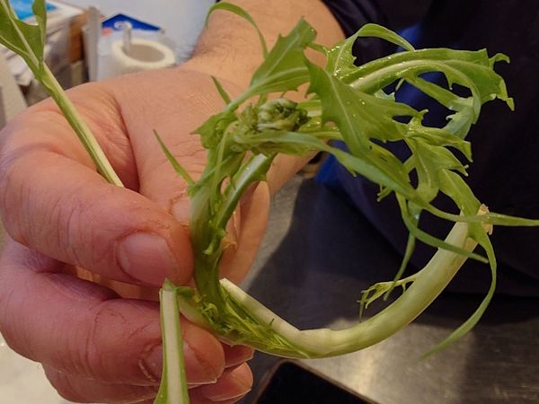 自然農法で栽培された花芽がついている水菜