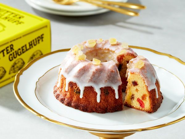 「バタークグロフ(レモン)」は、シナモンやナツメグなどのスパイスが香る生地に、ラム酒漬けのオレンジ、レーズン、チェリーなどのドライフルーツを混ぜ込んだ、華やかな味わいのスイーツです。 表面にはレモンピールとグレーズがトッピングされており、見た目にも鮮やかで、春らしいさわやかな風味が楽しめます。